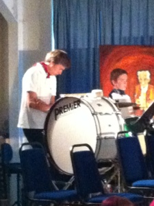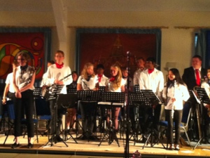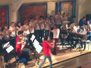 Søndagskvelden har vi vært på besøk hos Hade Edge Band. Vi startet med vårt bidrag til konserten og etter det spilte Hade Edge sitt ungdomskorps sammen med Roger Davies, som sang og spilte gitar. Deretter ble det litt å bite i før Hade Edge spilte flettene av publikum med bl.a. Thriller og Grease lightning… Torgeir, dirigenten vår og Håkon og Sakarias fikk spille sammen med Hade Edge, og noen av jentene våre entret scenen og danset Grease!