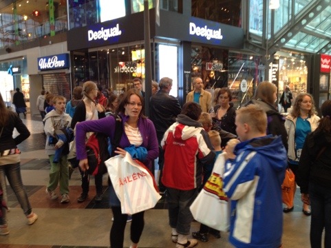 Om ikke Fjellklang setter standarden på scenen, så er vi ihvertfall blandt de beste publikummere å oppdrive. Lite folk i salen, men med Fjellklang i salen blir det liv. Vi fikk oppleve et fyrverki av dirigenter og fantastisk ungdom som leverte varene.Idag ble det svenske kjøttbullor med potatismos til middag med frukt til desser, svensk klassiker Korpset tok turen på shopping på ettermiddagen i Nordstand som er skandinavias største kjøpesenter. Det som ikke røk med på snop forsvant i fotballer, RC helikopter, klær og smykker. Foreldre og ledere hang med som slips etter ungene og som avslutning på shoppingen fikk vi se en hund som gjorde sitt fornødne inne på shoppingsenteret.